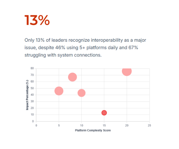Nearly half of organizations use five or more platforms daily. Two-thirds struggle with system connections. Yet very few recognize interoperability as the strategic constraint it has become.