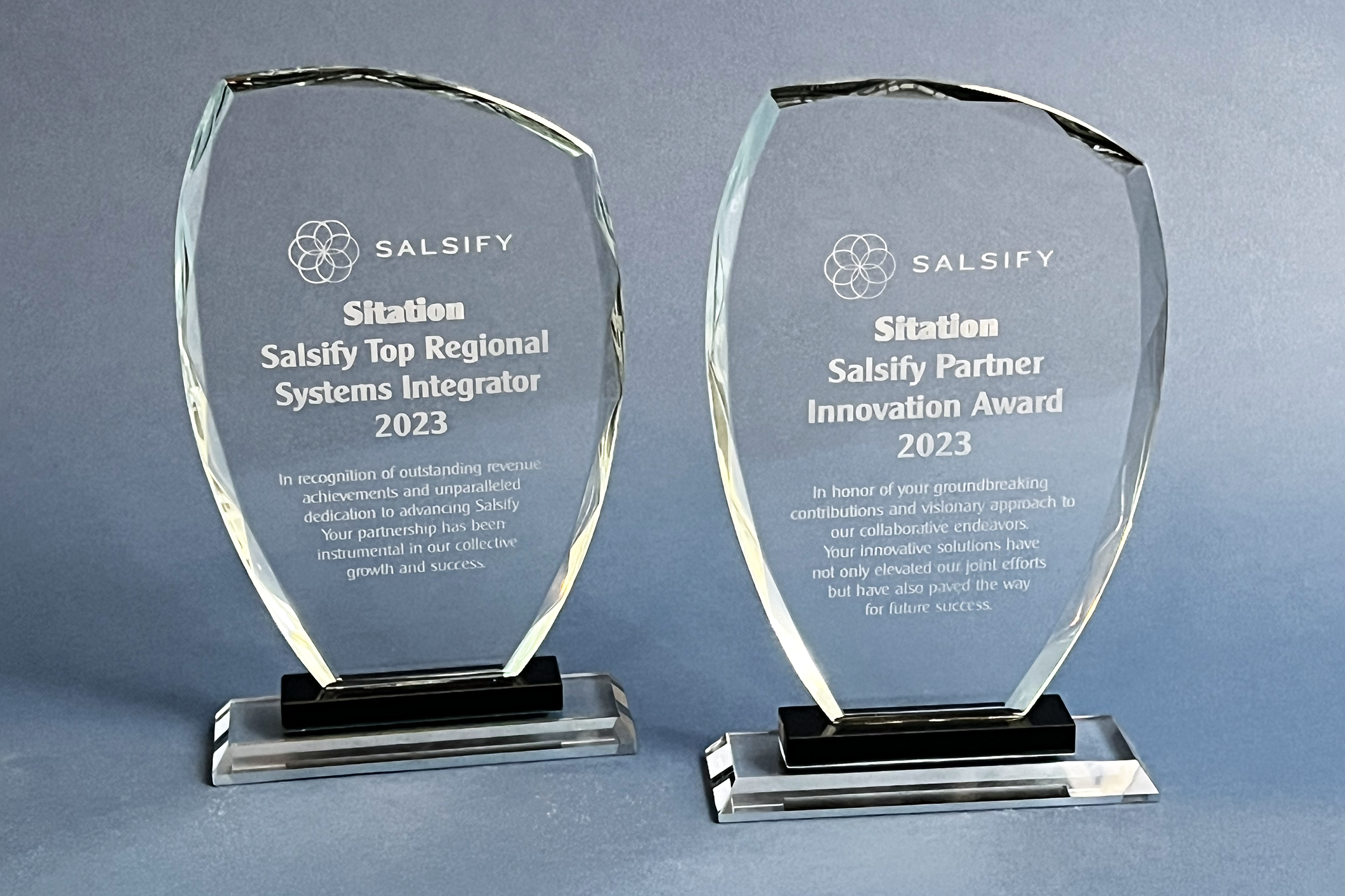 The Sitation team is honored to be named as Salsify’s Top Regional Systems Integrator for 2023, in recognition of dedication to outstanding delivery and partnership. Additionally, Sitation received the Partner Innovation Award, recognizing its achievements and contributions in creating new software for the Salsify ecosystem, including RoughDraftPro, Patchbay, and Portal.